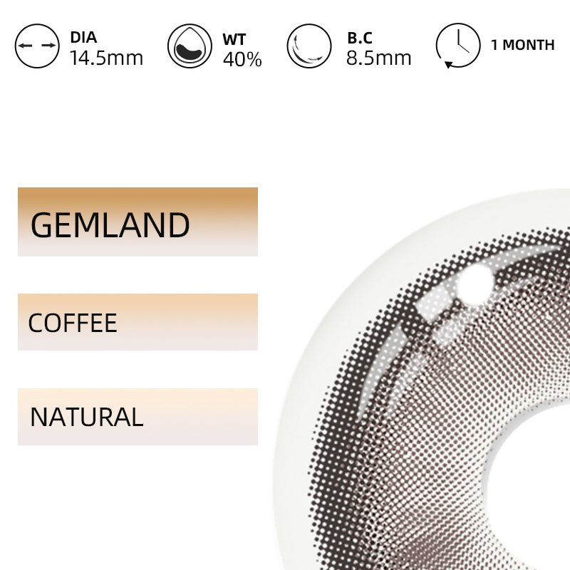 Gemland Coffee Contact Lenses use a gentle coffee-brown pigment that blends seamlessly with dark eyes, giving a soft-focus, warm glow.