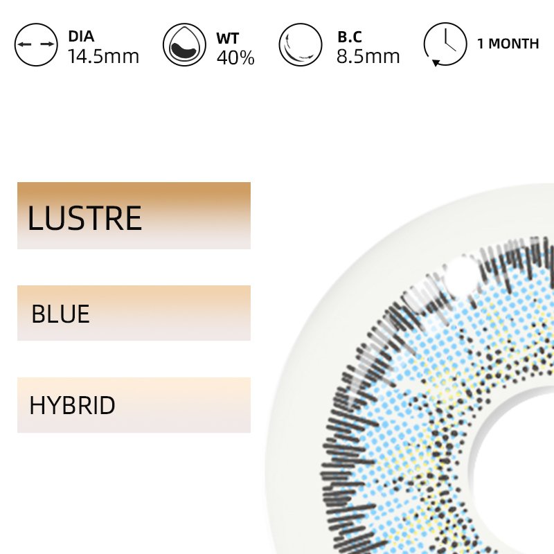 Introducing the Lustre Blue 14.5mm lens, the TGA-approved choice for bright Vibrant Blue Contacts. The 14.5mm diameter offers 14.5mm Noticeable Enlargement, perfect for TGA All-Day Wear and expressive style.